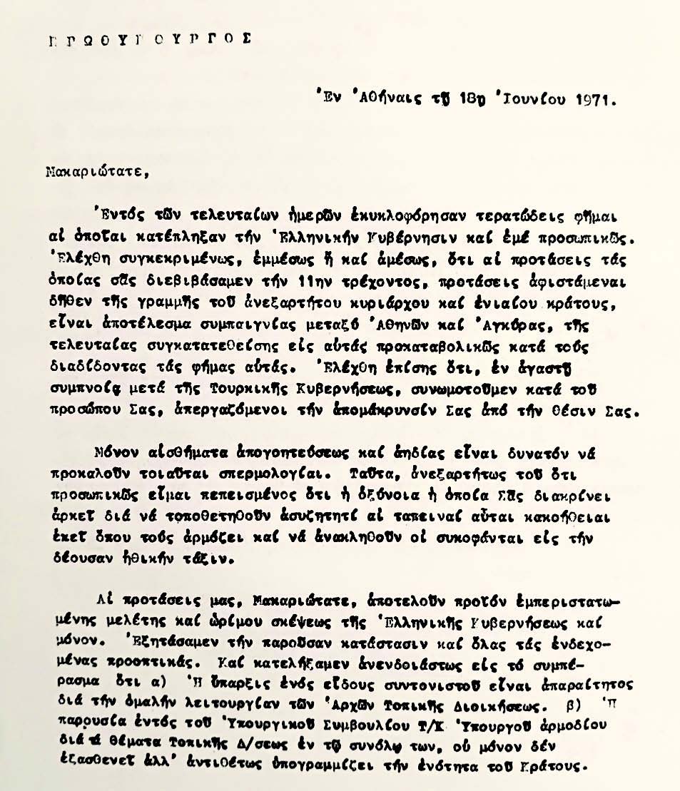 παραγόντων, ανάμεσά τους πολλοί ονομαστοί πολιτικοί, προσωπικά αρχεία,σημαντικές δημοσιεύσεις στην Ελλάδα, την Κύπρο και εκτός, και πάμπολλες